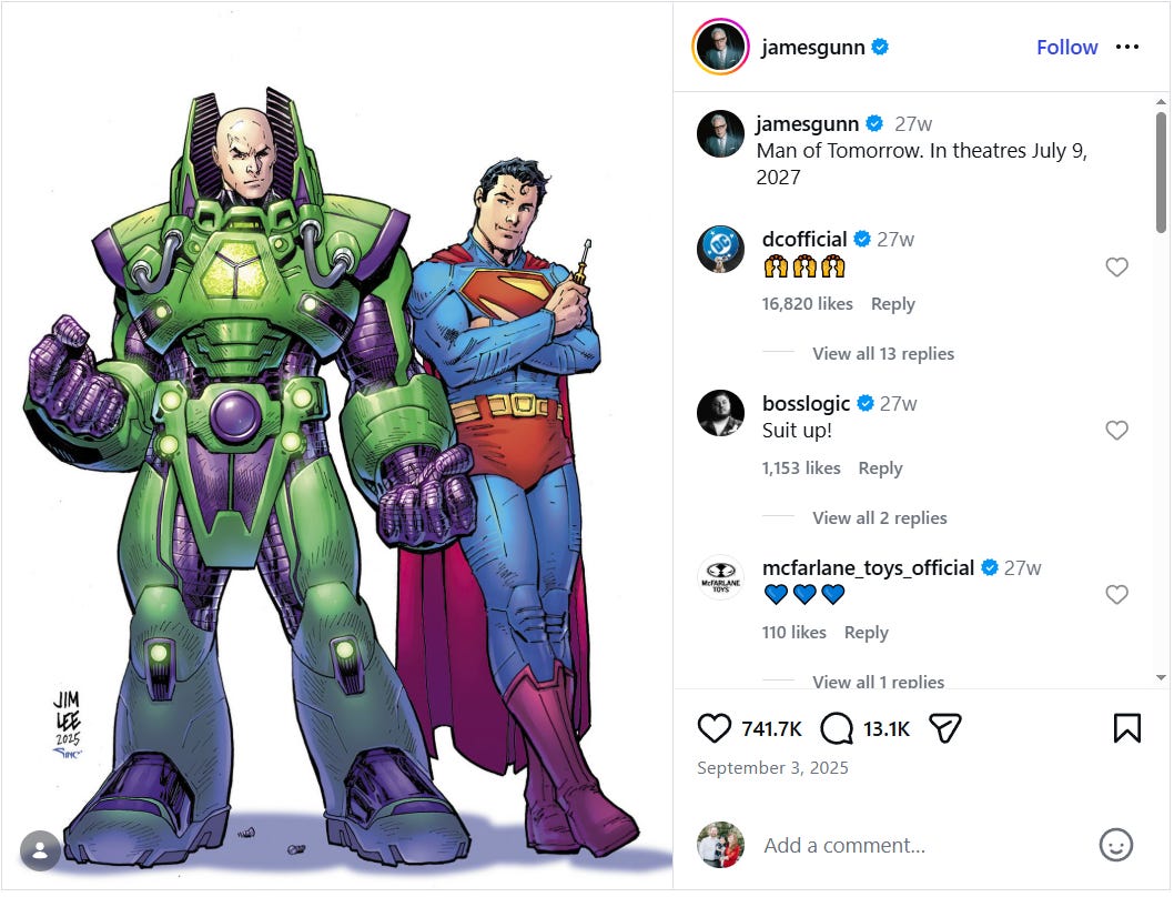 Man of Tomorrow was announced as the sequel to Gunn’s Superman film back in September 2025. Gunn wrote on Instagram, “Man of Tomorrow. In theatres July 9, 2027.”