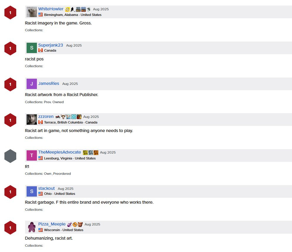 The board gaming circuit is a small community, and they always default toward cancel culture, even in 2025. Even a company from Brazil doesn’t get the benefit of the doubt as they rage across BlueSky and the board game website, Board Game Geek, where moderators actually encourage this harassment and ban people from dissenting from th mobs.