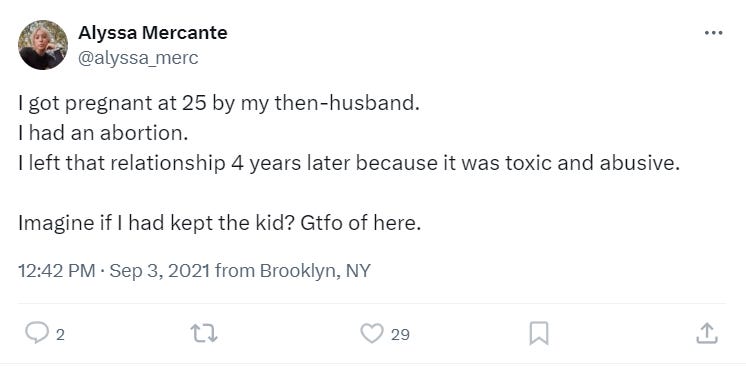This is not the first time Mercante has admitted to murdering her children. Back in September 2021, she wrote, “I got pregnant at 25 by my then-husband. I had an abortion. I left that relationship 4 years later because it was toxic and abusive. Imagine if I had kept the kid? Gtfo of here.”