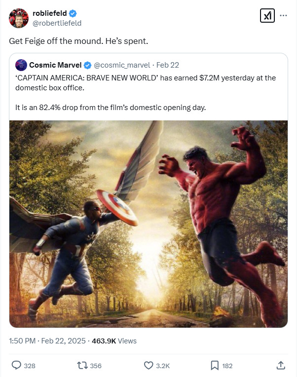 What do you make of Liefeld’s call to have Feige axed at Marvel Studios after Captain America: Brave New World’s box office disaster?