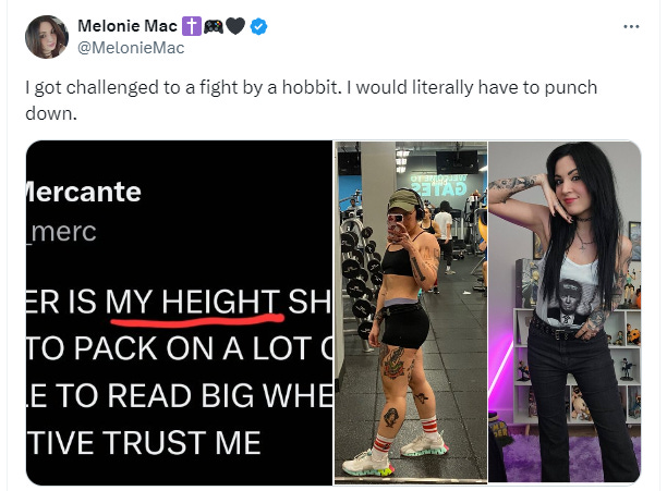 Mac responded to Mercante’s challenge writing, “I got challenged to a fight by a hobbit. I would literally have to punch down.”