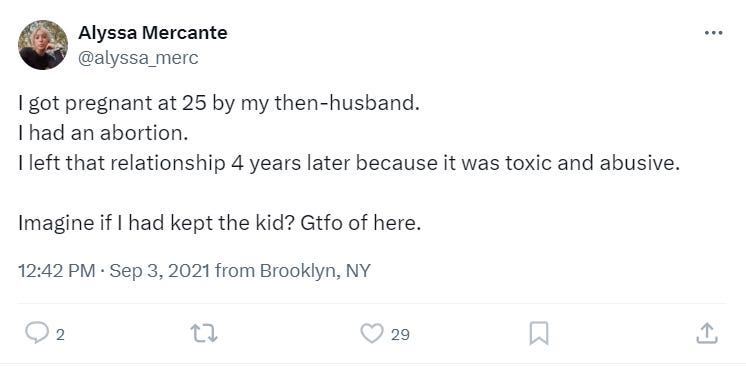 She went further on her own X feed, stating, “I am not ashamed of my abortions. I want to be a mother and still plan on it, but had to make a difficult decision at those points in my life. No man will ever understand what a pregnant person goes through when deciding to terminate, even as early as I did.”