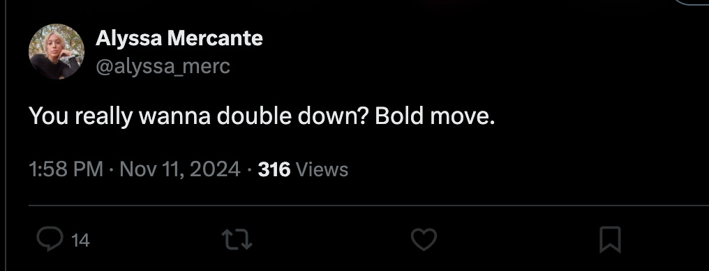 At this point, Mercante threatened John Trent on his X thread, despite having him blocked. She said, “You really wanna double down? Bold move.”