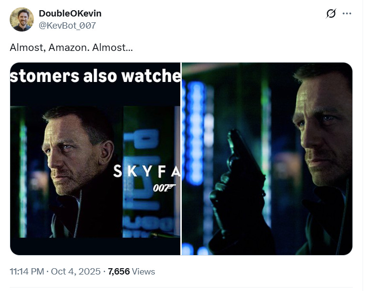 After this extensive backlash, Amazon Prime Video updated the thumbnails for its Bond films with stills from the films. However, as X user KevBot_007 notes they still cropped out the firearm from at least one of them in Skyfall.