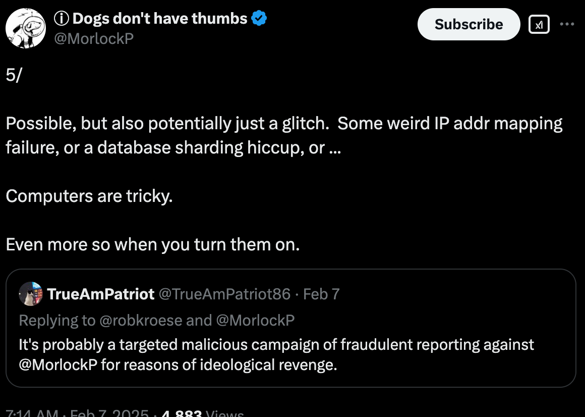 His fans speculated that Amazon was being malicious due to politics, which happens all too often in these spaces. However, Corcoran states that he believes it’s simply a glitch on Amazon, posting, “Possible, but also potentially just a glitch. Some weird IP addr mapping failure, or a database sharding hiccup, or ...Computers are tricky. Even more so when you turn them on.”
