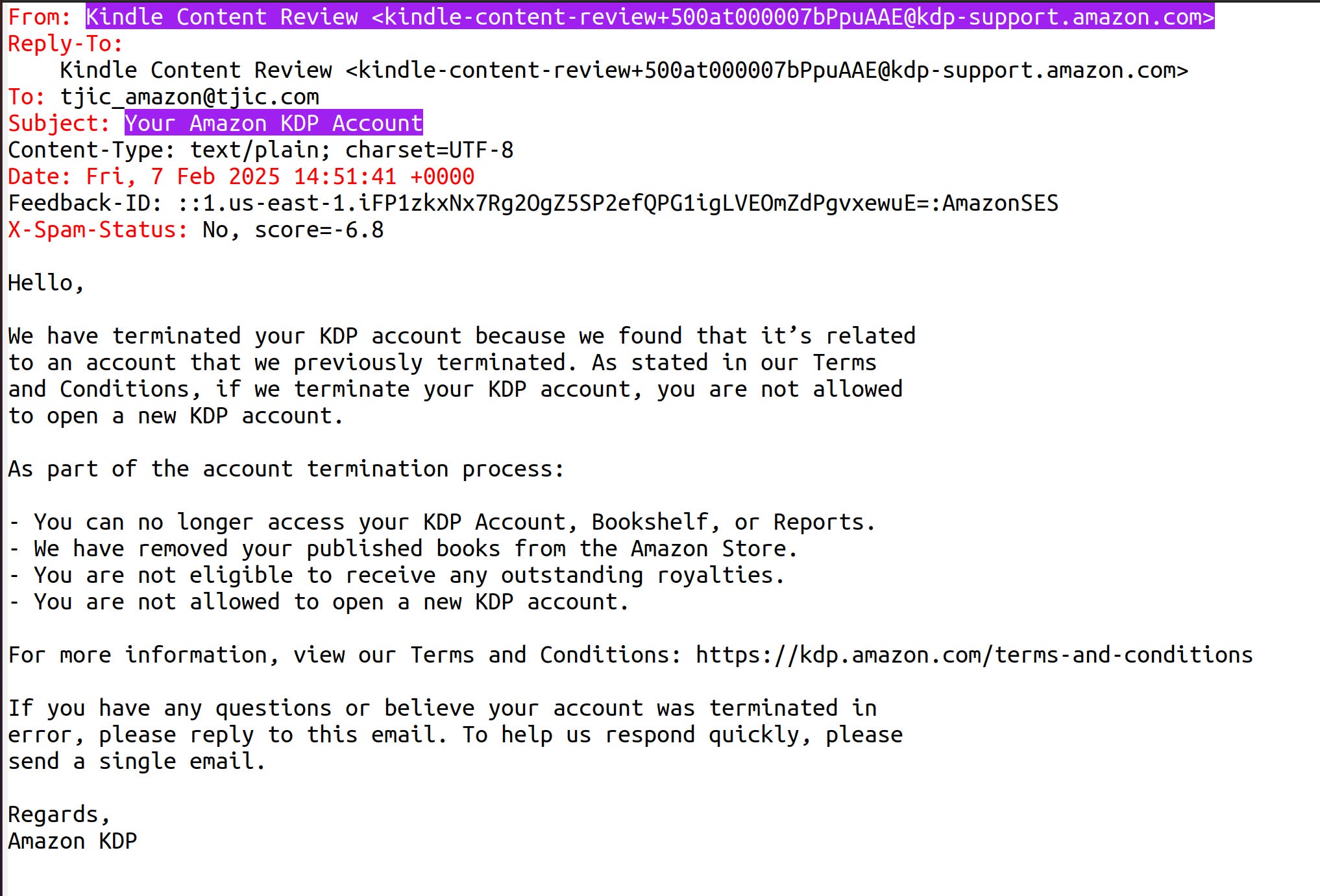 - You can no longer have access to your KDP Account, Bookshelf, or Reports.