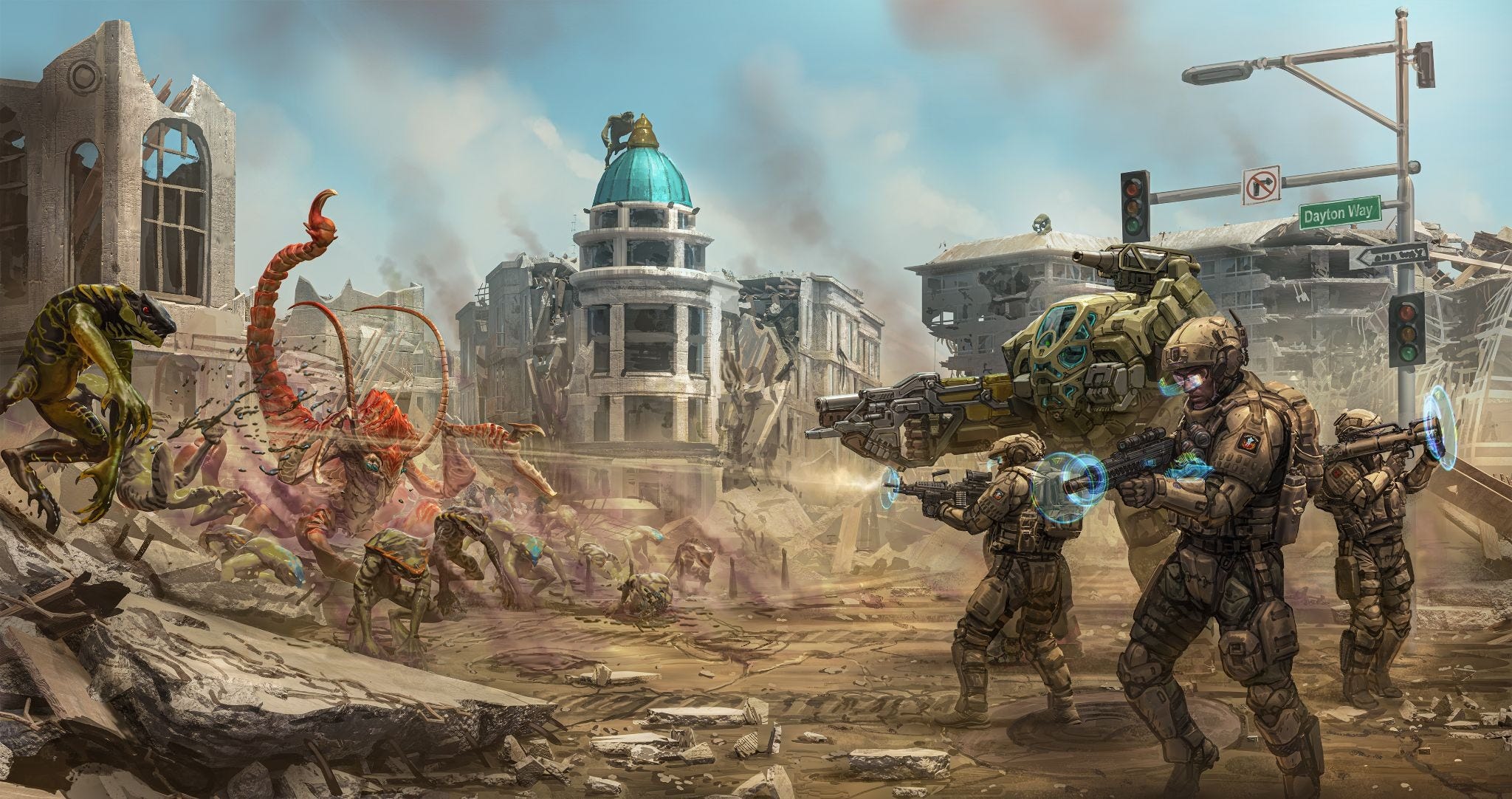 There’s Ashton Slade, a military intelligence officer who begins putting the data behind the instances of alien events together. Adam Cain, an old warhorse, was called back into duty. Dana Blaze, an amoral, ambitious news reporter who is surprisingly a fan favorite. Jay Drake, a billionaire tech developer looking to profit off the aliens. Titus Hill, a submarine commander. Cassie, a high school girl. Natalia Falton, a marine on duty in Guam when the aliens attack. And Antonio Colton, an ex-military man, becomes the leader of a militia unit known as Colton’s Cutthroats.