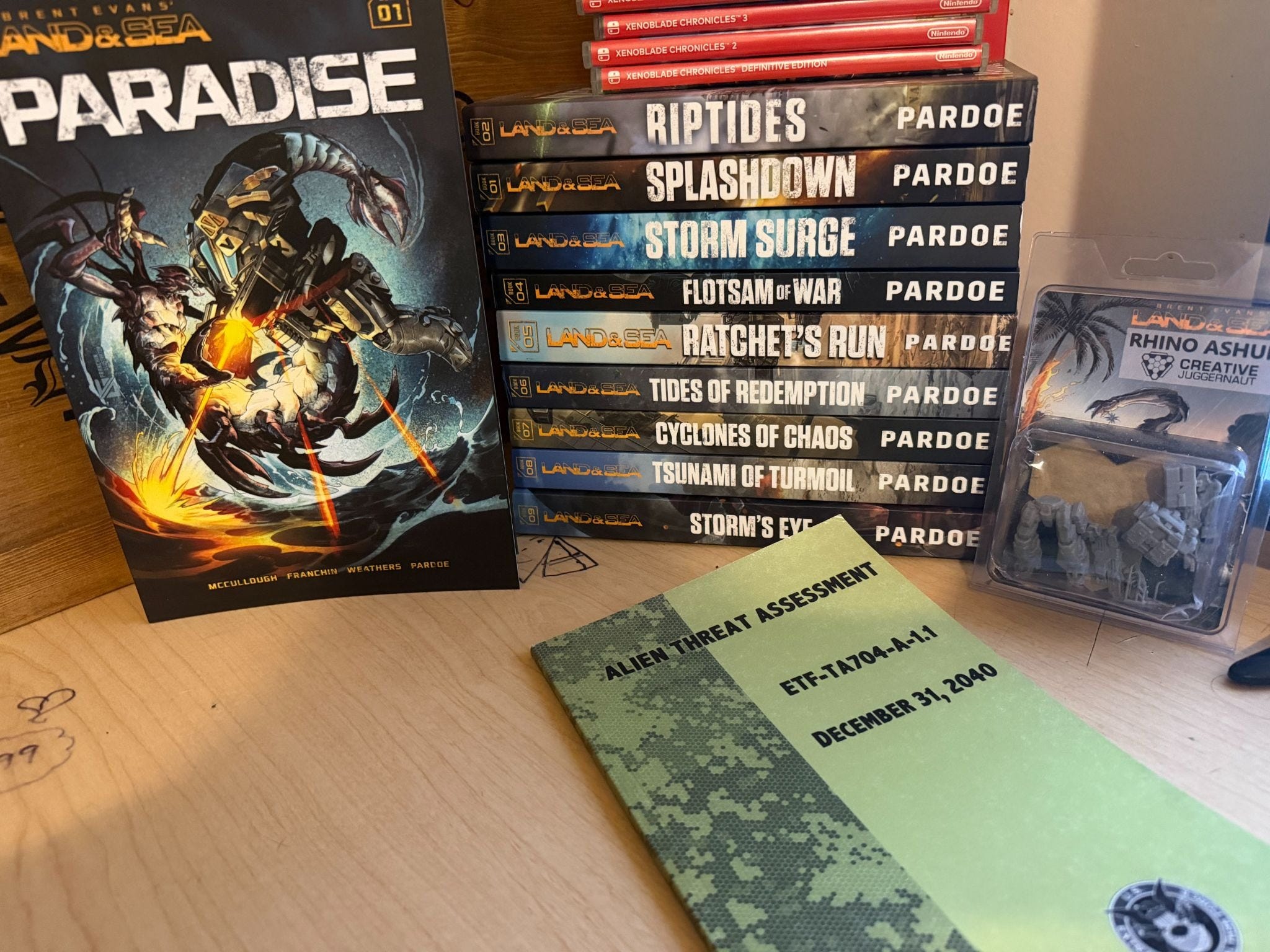 The series launched with its first three books in quick succession and thanks in part of Blaine Pardoe’s prolific output has already reached 10 books. Blaine is the primary author of the first 9 books and recently indie author Declan Finn was brought in as the author of the 10th book in the series. Land & Sea also recently fulfilled its first successful graphic novel (titled Paradise).