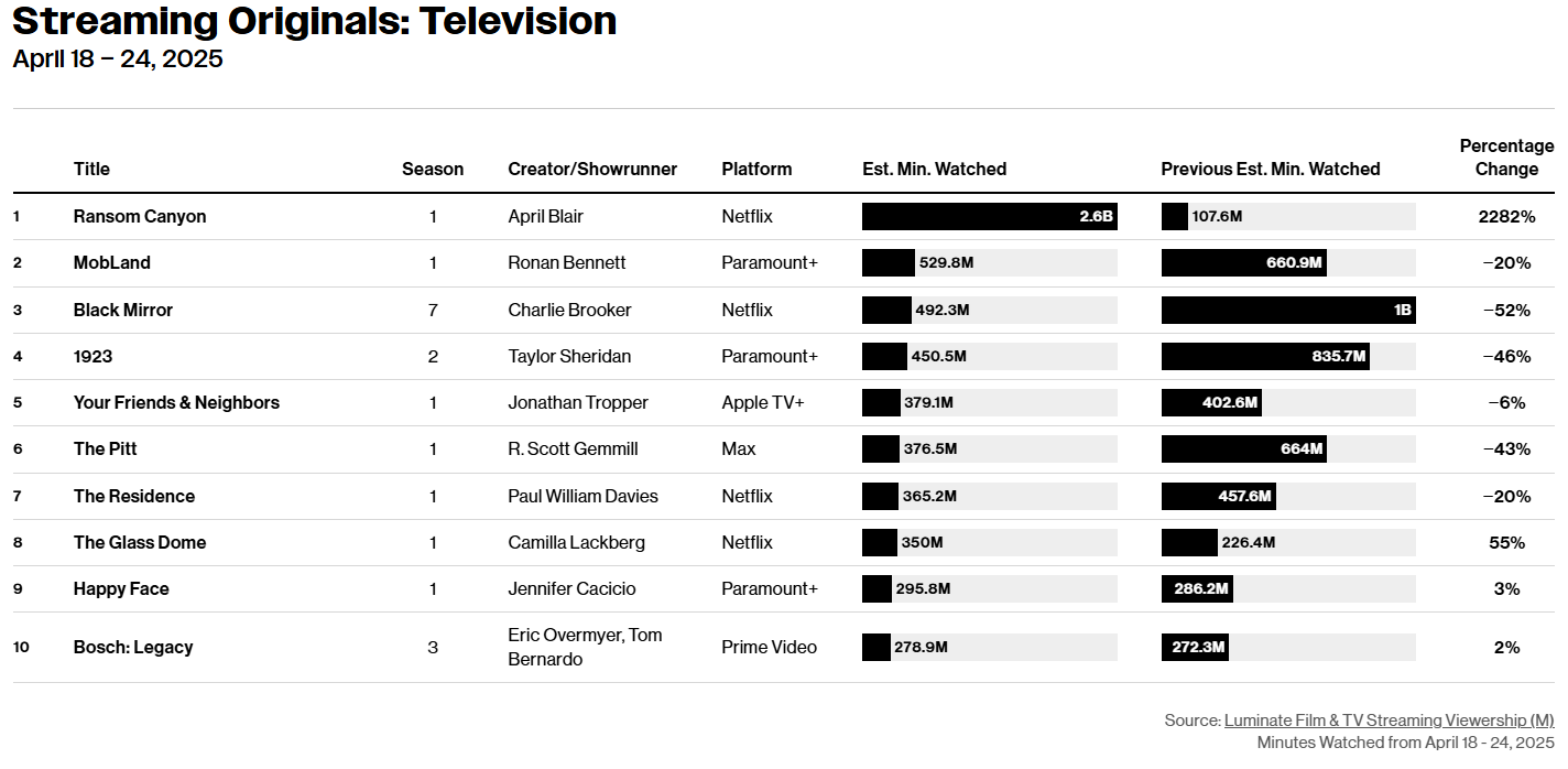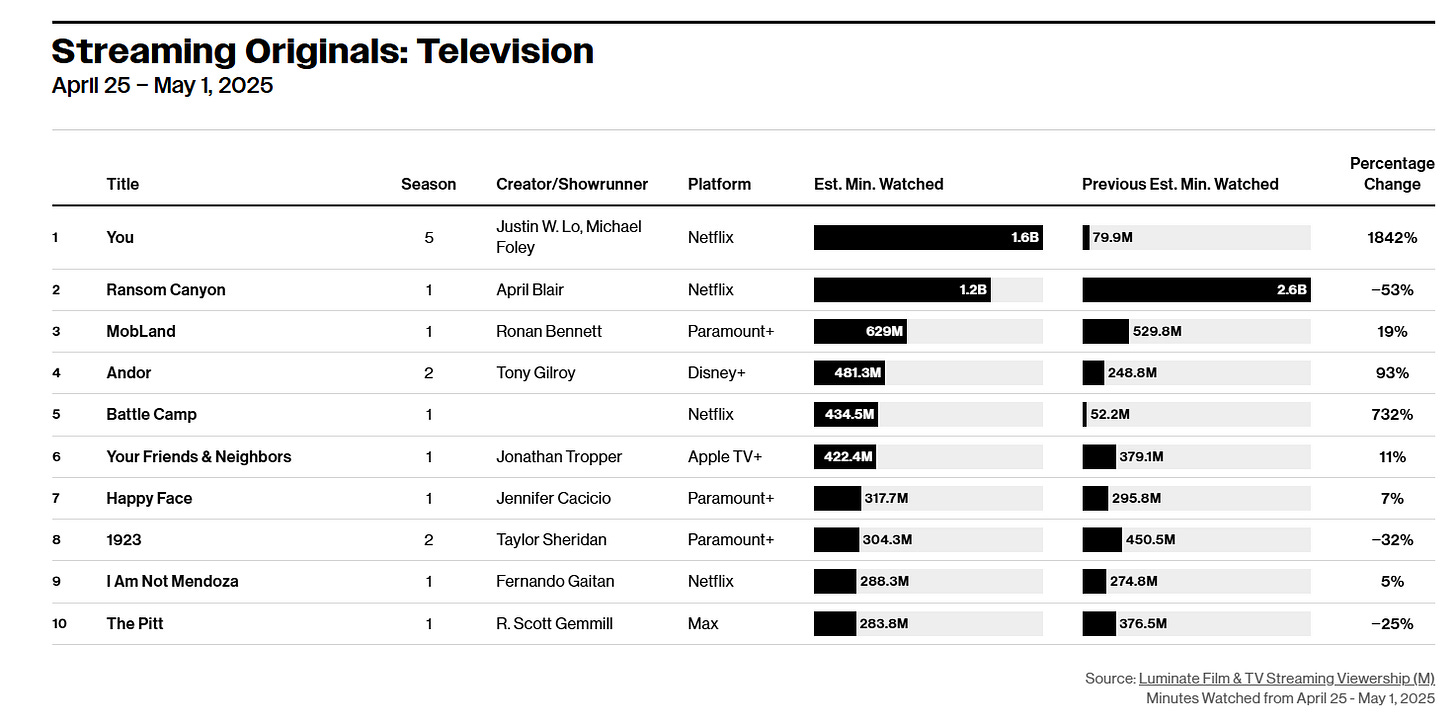 While Nielsen has not released any Season 2 data yet, its competitor Luminate noted that the release of three-episodes on April 29th only garnered 481.3 million minutes.
