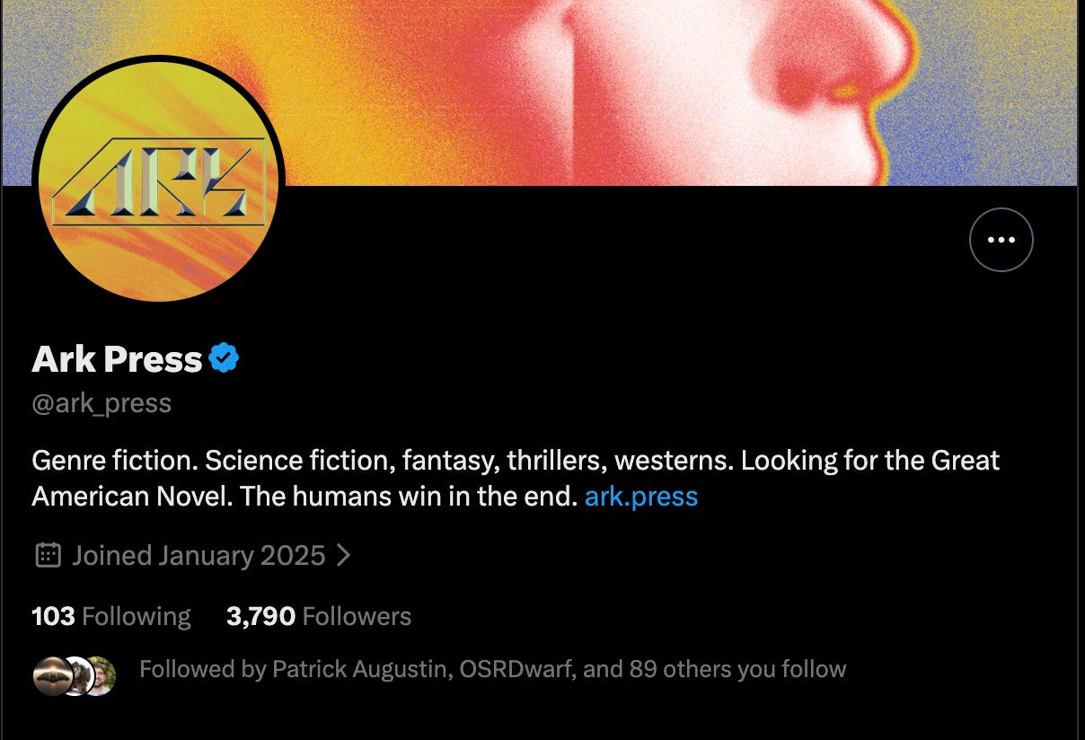 Over the summer, he hosted regular Twitter Spaces hyping up the press, though to limited success as the X account now only has fewer than 4,000 followers—many of those coming from the main Passage Press account promoting it.