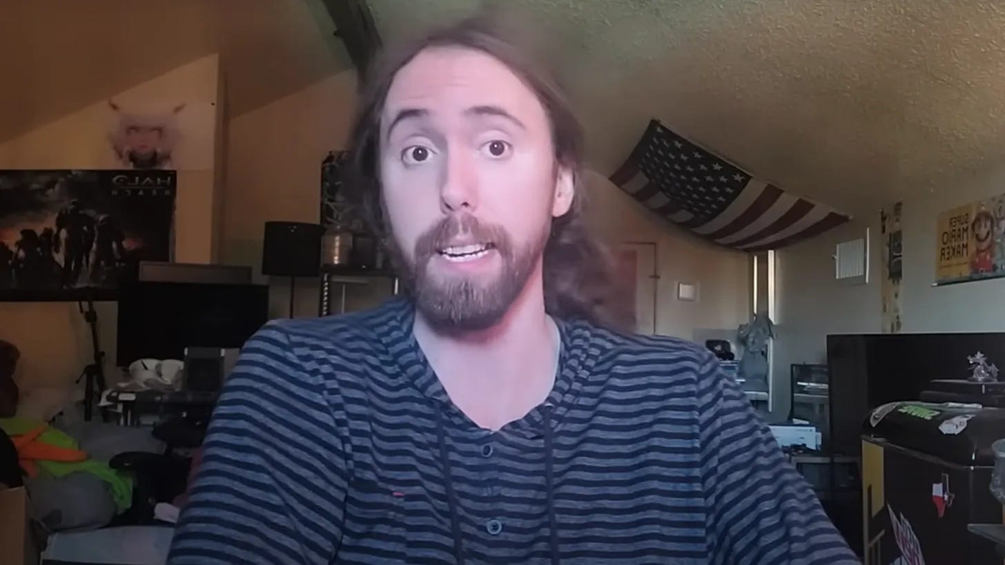 I really like Asmongold. I don't agree 100% (more like 90%) with his "hot takes" but he's funny and entertaining. He's good people.