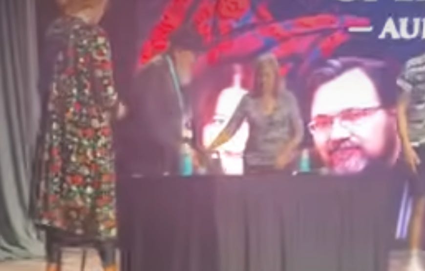 A bold female fan asked in a hostile room, “George, you’re not gonna be around for much longer. And this is a tough question. This is more directed at Brandon. I was wondering, like, how would you feel about someone else taking over and finishing the books?”