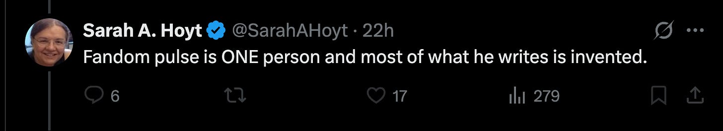 These are some fairly big stories today, and the type of stuff you won’t find anywhere else. Really proud of our team working full-time. Author Sarah Hoyt, who is not an American, chimed in on Fandom Pulse last evening: