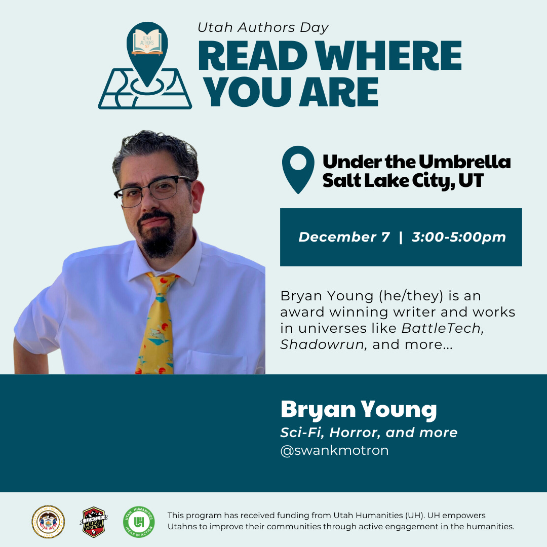 Now, Bryan Young is on the precipice of a new release of a Battletech novel, yet another one with a strong, female lead.tytled Voidbreaker. As he’s making the rounds to book stores, he wants to virtue signal fake genders and mental illness again with broadcasting “he/they” pronouns. He did so in an advertisement for the signing occurring at Under The Umbrella in Salt Lake City, UT.