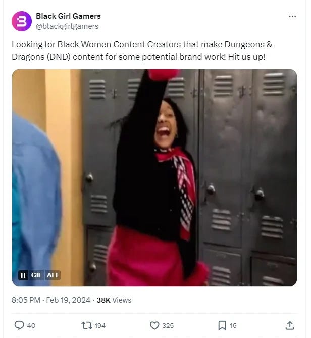 The fight between Black Girl Gamers and their critics started when ace journalist John Trent discovered a tweet from Black Girl Gamers that stated, “Looking for Black Women Content Creators that make Dungeons & Dragons (DND) content for some potential brand work! Hit us up!”