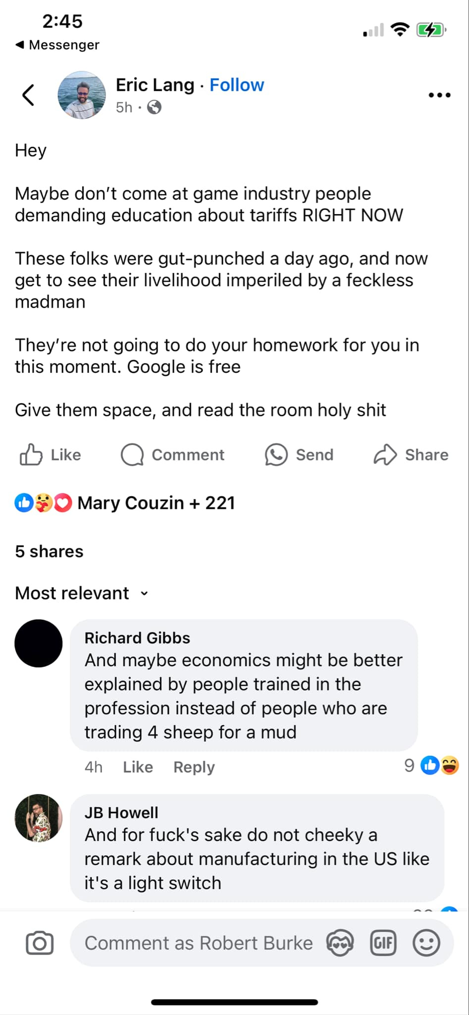 "Hey, Maybe don’t come at game industry people demanding education about tariffs RIGHT NOW."