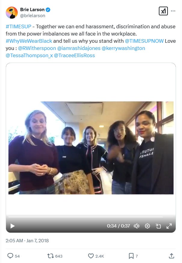 Larson was also part of the Time’s Up movement. She shared her support of the organization and its cause back in 2018.