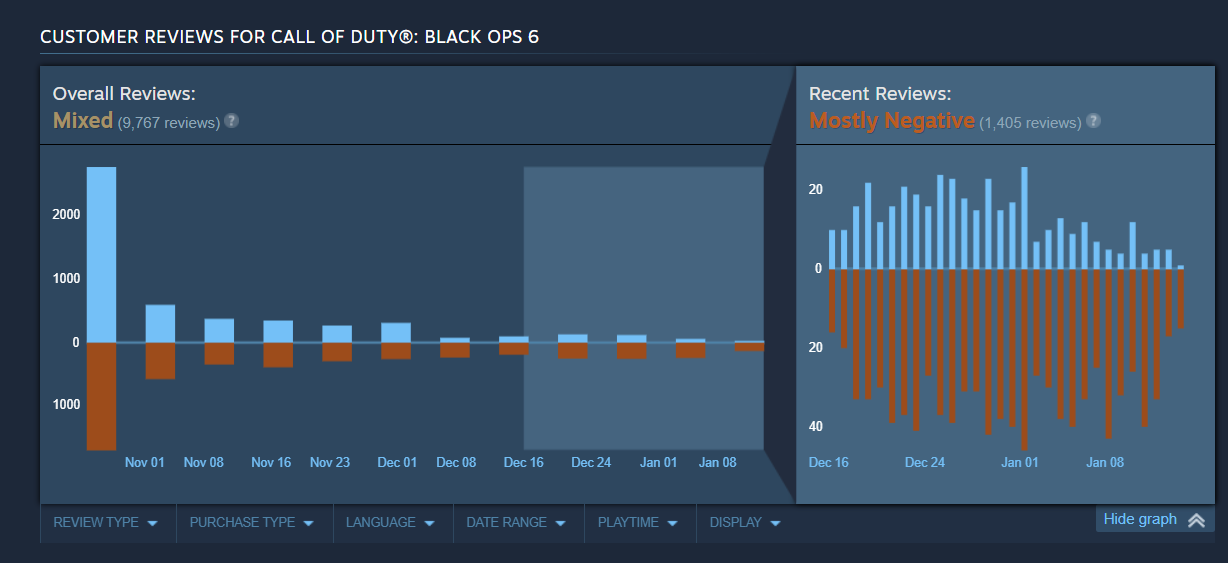 What do you make of recent reviews for the game being “mostly negative” and the player counts dropping around 80% since Black Ops 6’s release?