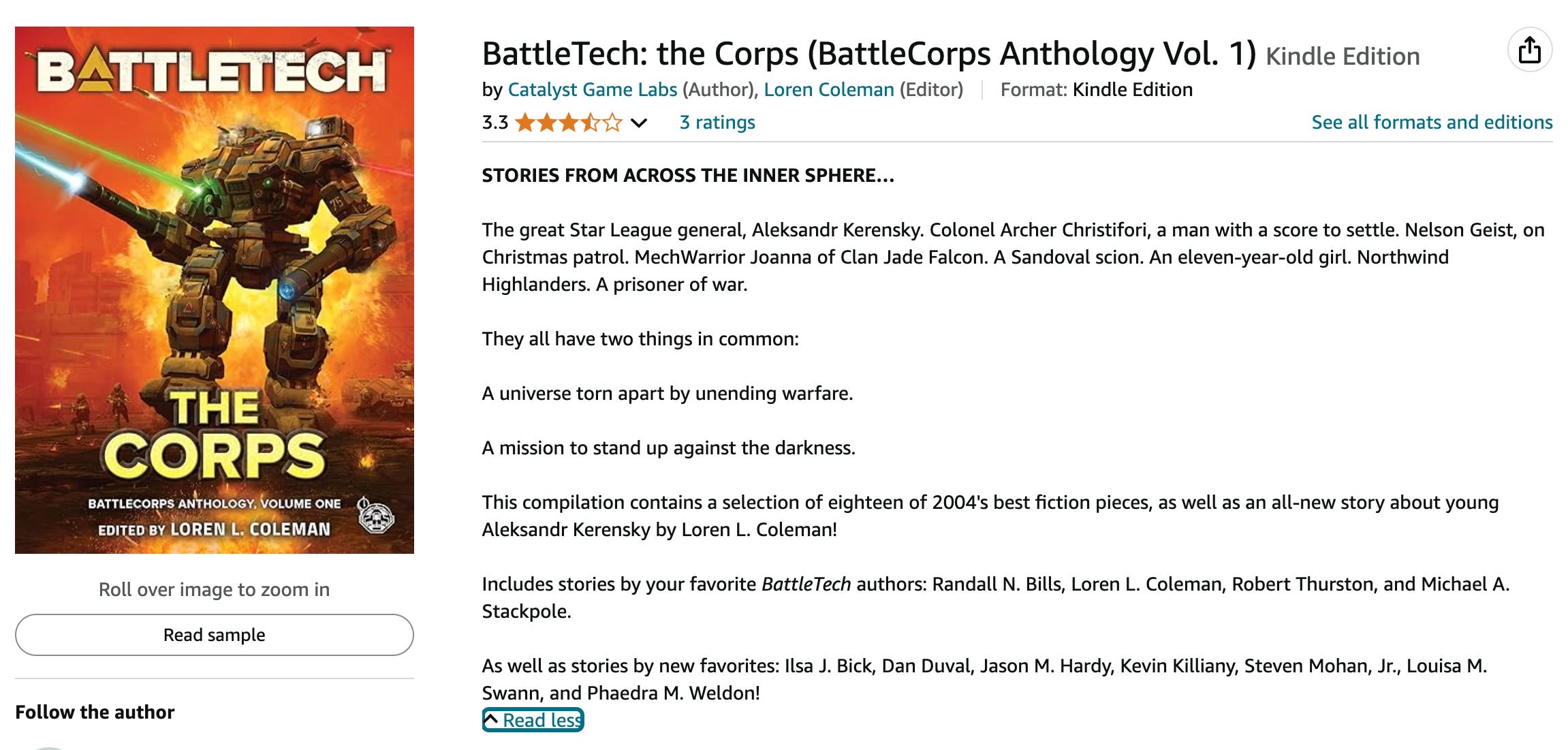Catalyst Game Labs Fails To Credit Blaine Pardoe For His Work On A Rereleased Battletech Anthology Amazon Book Page