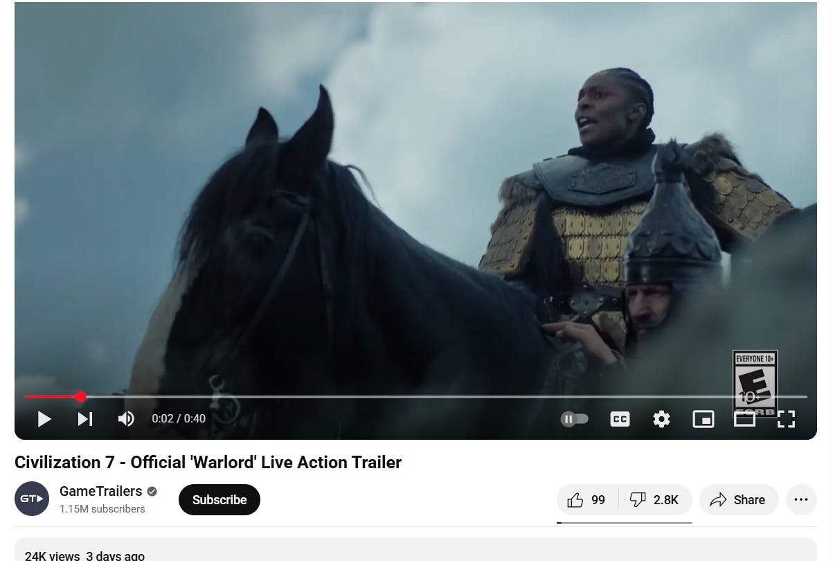 In a promotional video seemingly aiming at humor, Sid Meier’s Civilization VII showed a black woman leading a group of Asians and declaring that a captured land will be called Puddington because “Melvin392’s glorious sweet tooth craves sugary spoils.”