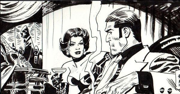 Alex Toth drew two stories, then washed his hands of it due to the exploitative vice elements, unbalanced by any interest in the good, beautiful and true winning in the end. (Armchair critics today are fond of calling such work nihilistic.) Then Jordi Bernet took over. Both of them did a masterful job getting the details right (so far as I can tell) and transporting the reader into a hardboiled Depression-era underworld vibe.