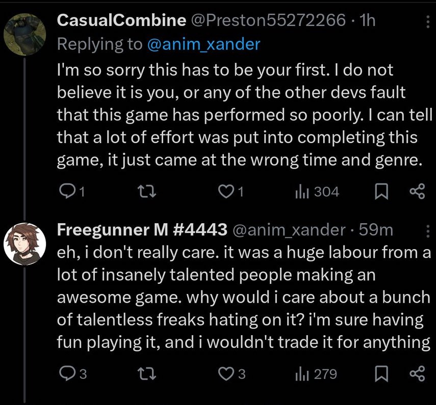 At that point, the Concord developer decided to attack gamers and the fans, saying, “eh, I don’t really care. it was a huge labour from a lot of insanely talented people making an awesome game. why would i care about a bunch of talentless freaks hating on it? I’m sure having fun playing it, and i wouldn’t trade it for anything.”