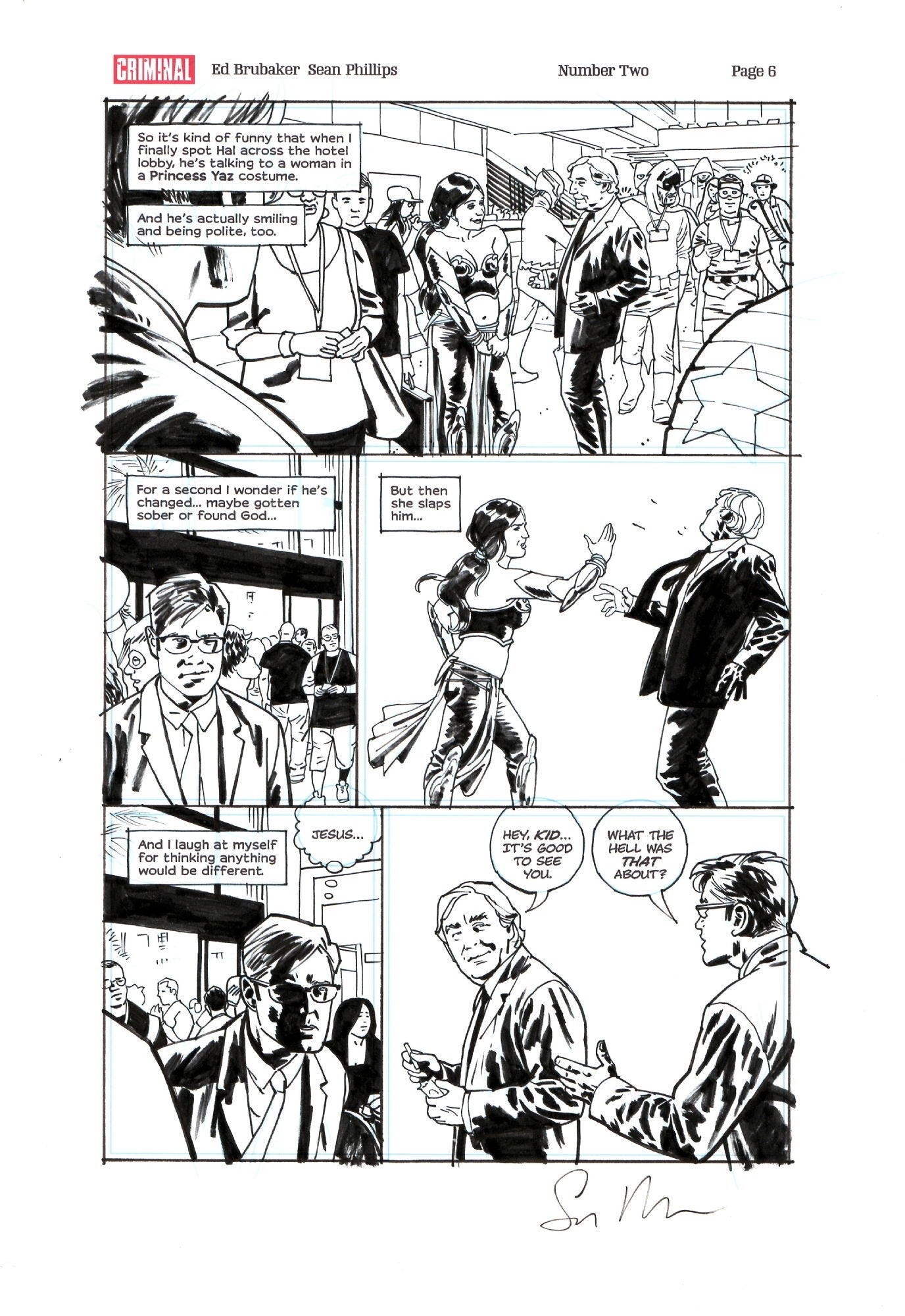 Sean Phillips is the perfect artist for Criminal. His style is dark, moody, and atmospheric, with heavy shadows, muted colors, and compositions that evoke classic film noir. Every page drips with mood, and his character work is expressive without being exaggerated. You can read emotion in a character’s posture, their eyes, the way they hold a cigarette.