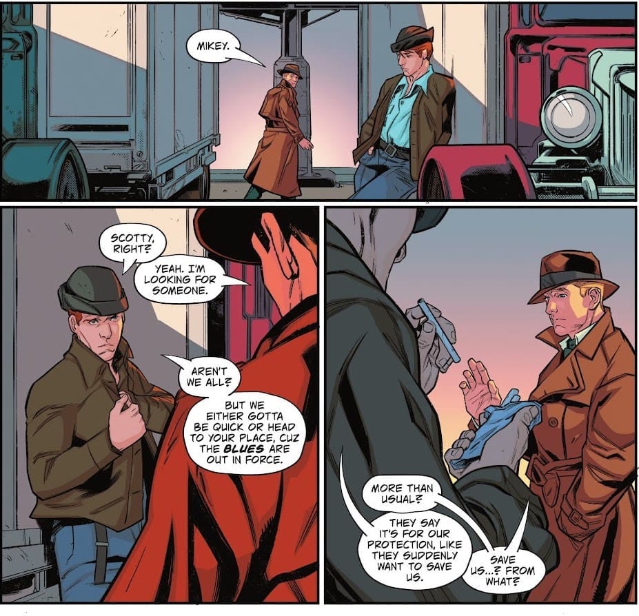 It’s nonsensical for the world, given how many alien attacks the DC Universe faces, but supporters of him are portrayed in the panels shown by Bleeding Cool as worrying about aliens moving in next door as if they’re unthinkingly following a stupid slogan.