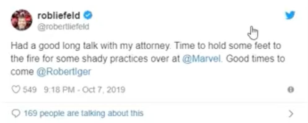 In 2019, Liefeld threw shots at Marvel Comics, tagging Disney CEO Bob Iger in a tweet where he criticized the company for its bad business practices. In the now deleted tweet, Liefeld said, “Had a good long talk with my attorney. Time to hold some feet to the fire for some shady practices over at @marvel. Good times to come @RobertIger.”