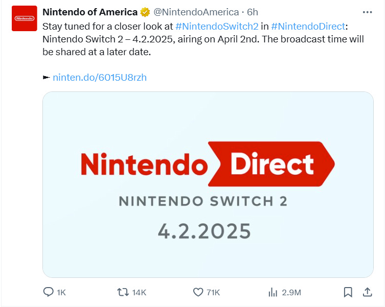 Finally, the company announced it would provide a closer look during an upcoming Nintendo Director presentation which will take place on April 2, 2025.