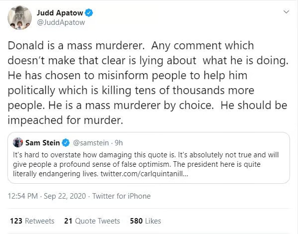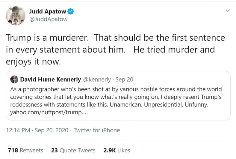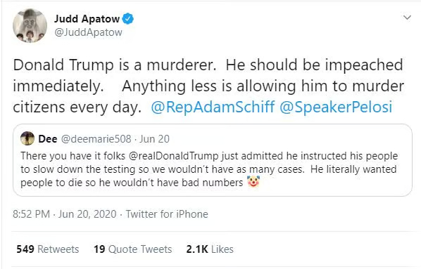 Apatow then said Trump “should be impeached for murder.”