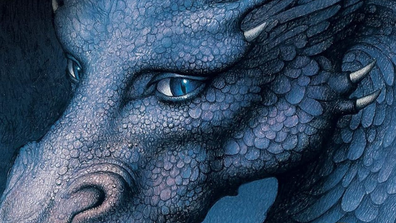 The Eragon series, which is officially known as The Inheritance Cycle, is a four book series that follows farm boy Eragon after he discovers a a blue stone that hatches into the dragon Saphira and binds him as a legendary Dragon Rider. Together with his allies, he trains in magic and combat to fight against the tyrannical King Galbatorix.