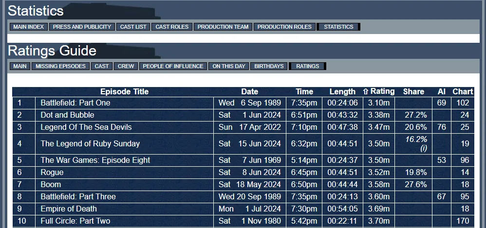 Russell T. Davies admitted the ratings were poor to the Radio Times in June, ‘“I’m very proud of it! You know, they might not be the ratings we’d love. We always want higher. But they are building over the 28-day period. Episode 1, Space Babies, is already up to 5.6 million and counting. So it is getting there.”