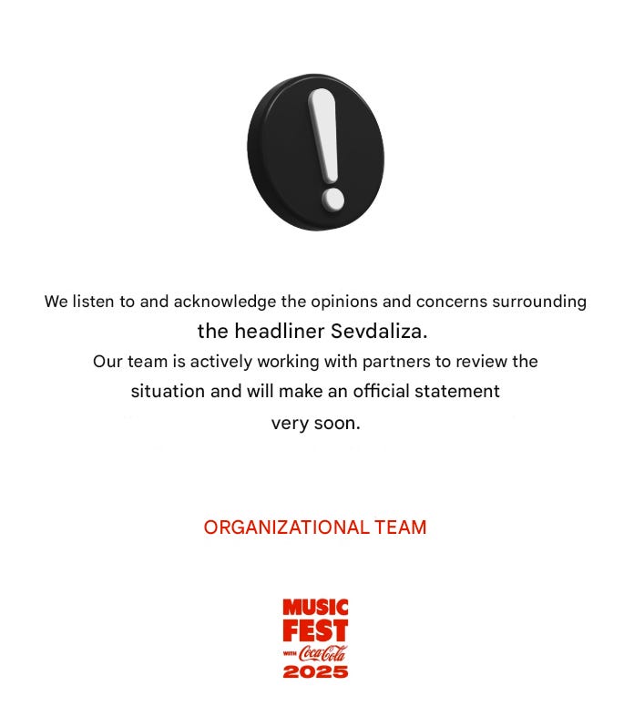 The Coca-Cola Music Fest which starts on August 30th announced on August 23rd that it was looking to the scandal around its headliner, Sevdaliza. In an Instagram post as translated by Google, the festival stated, “We listen to and acknowledge the opinions and concerns surrounding the headliner Sevdaliza. Our team is actively working with partners to review the situation and will make an official statement very soon.”