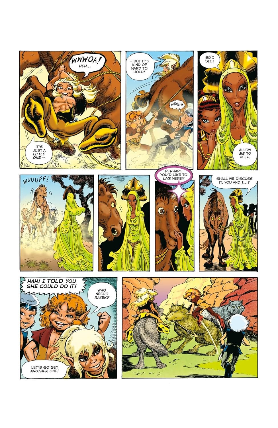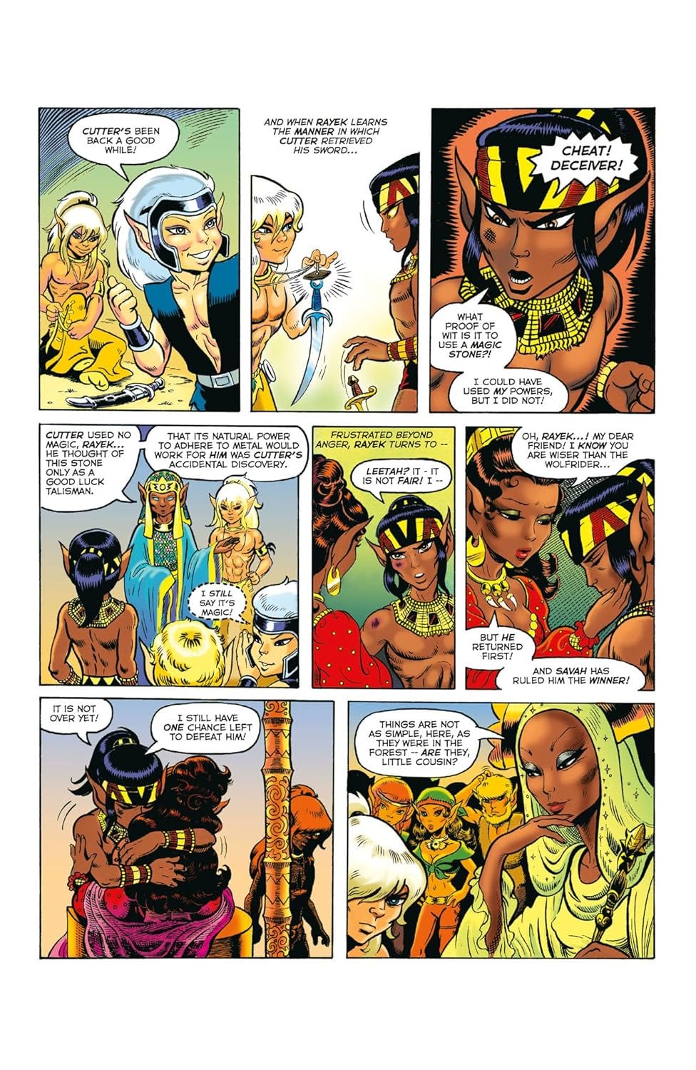 What follows is the Quest: a journey across a desert landscape leading to another elf tribe, the Sun Folk, who are more Persian in character, dwelling in an oasis civilization unlike anything in the Wolfriders’ forest existence. The culture clash, the romance, the politics, and the mystery of where elves actually came from all unfold across what is genuinely one of fantasy’s great stories.