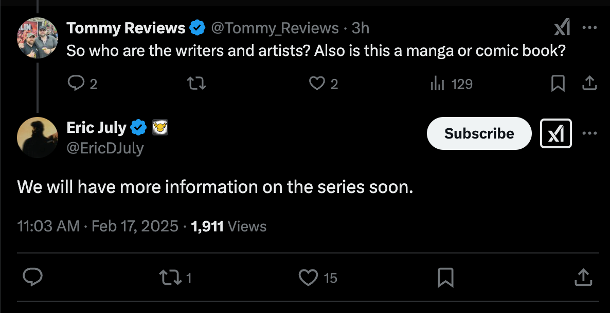 When asked about the project, Eric July followed up saying, “We will have more information on the series soon.”