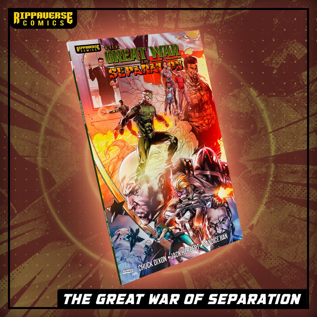 Though this delays several projects, I wished them well and will not do anything to spite them. I bring this up as a reminder to you all. We've seen a LOT of success, but we are still up against it. Though the Rippaverse leaves its politics at the door, the individual politics of people like me, Chuck Dixon and others will always be held against us. We all know what the "acceptable" politics are in the Western comic book industry.