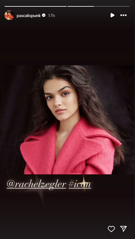 In a recent post to his Instagram Stories, Pascal shared a photo of Rachel Zegler, shared her handle, and described her as #icon.