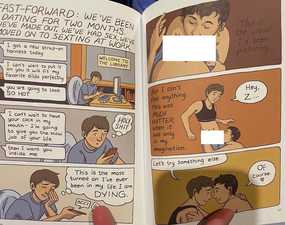 While advocates for Gender Queer love to cry censorship, they fail to acknowledge the graphic nature of the work. The book depicts two nude men making out, with another page having dialogue of “rubbing the front of my jeans and imagining getting a blow job.”