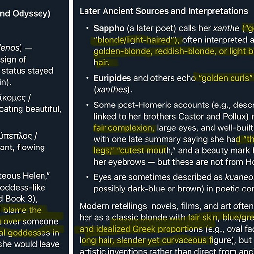 Casting Lupita Nyong'o as Helen of Troy is absolutely disgusting and goes directly against what was written thousands of years ago. See attached on how Helen of Troy was written about. It’s pretty specific.”