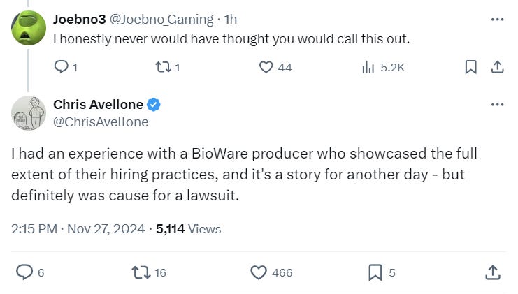What do you make of Avellone’s recommendation that the company he formerly co-owned should be sued for what looks to be illegal hiring practices? Become a paid member to leave a comment and let us know.
