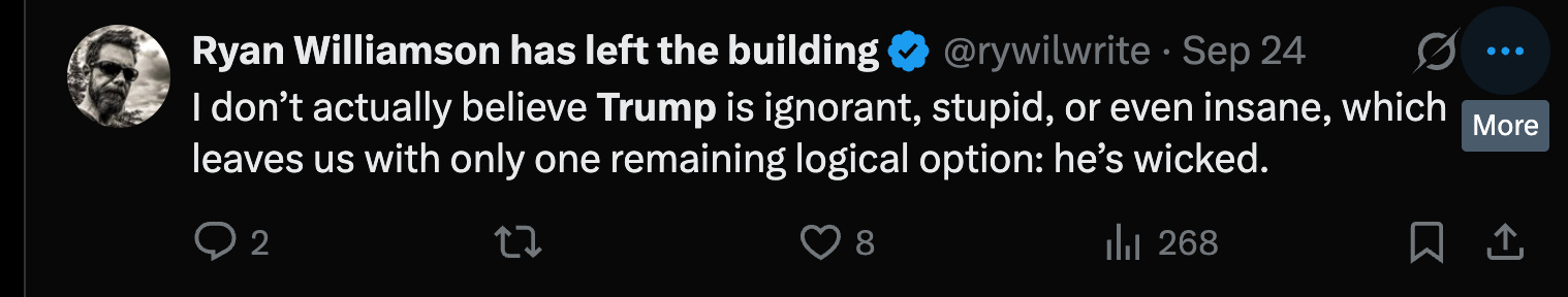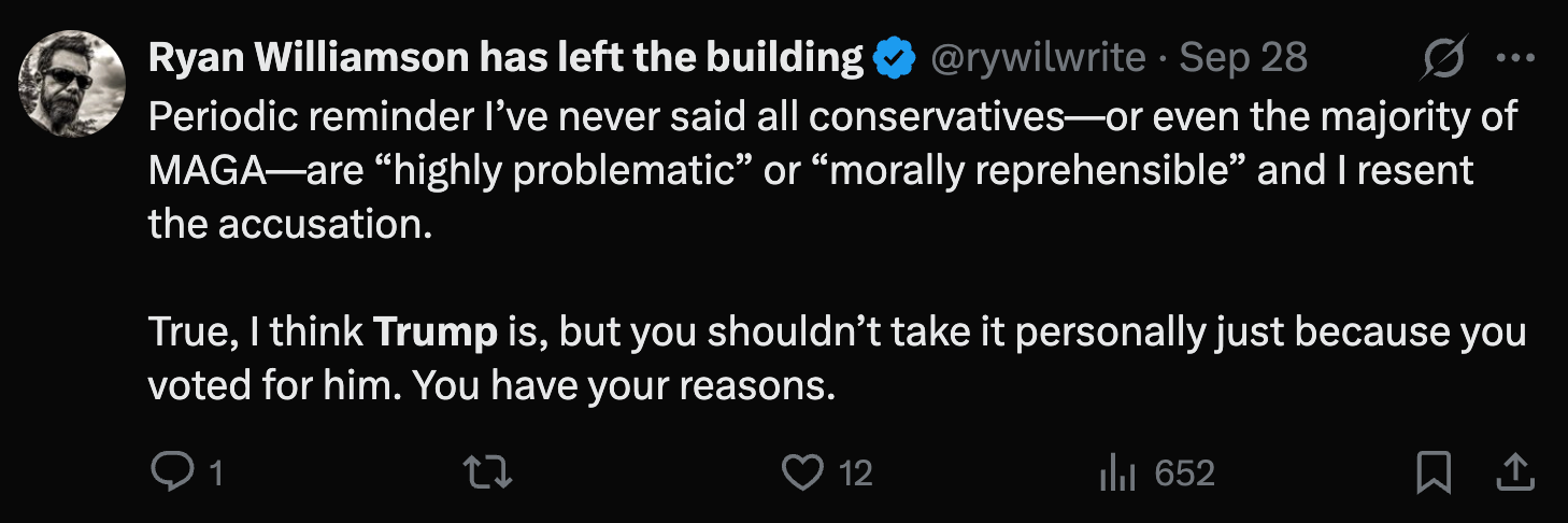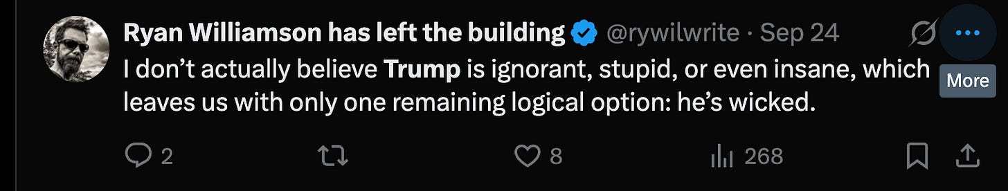 Ryan Williamson mostly kept his Trump derangement in check while Doomsday Recon was coming out, but as 2025 went along, after the trilogy was released, he began to get more and more agitated toward his audience with his postings.