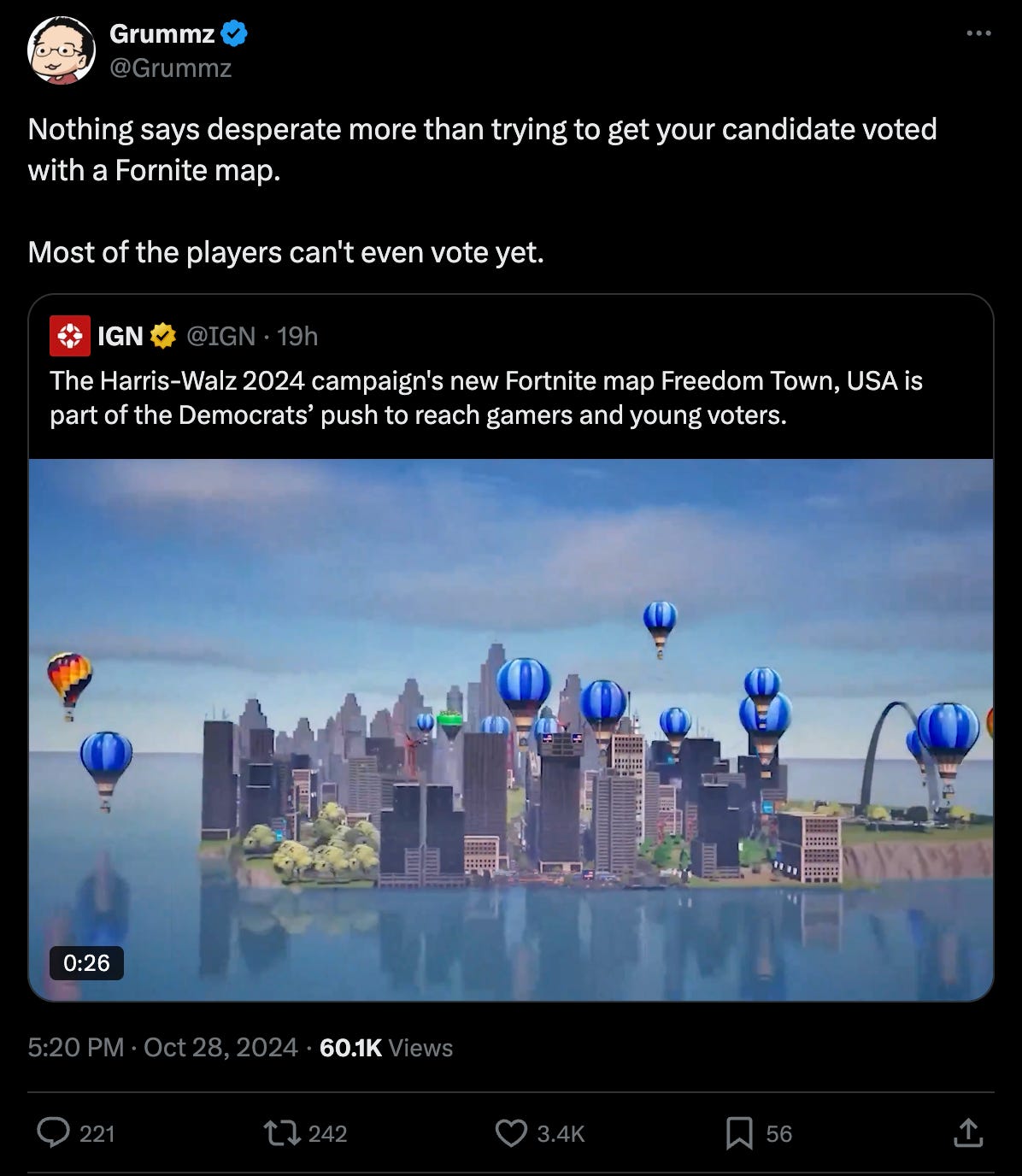 The Harris-Walz campaign launched a Fortnite map called Freedom Town, USA, and Grummz is not impressed.