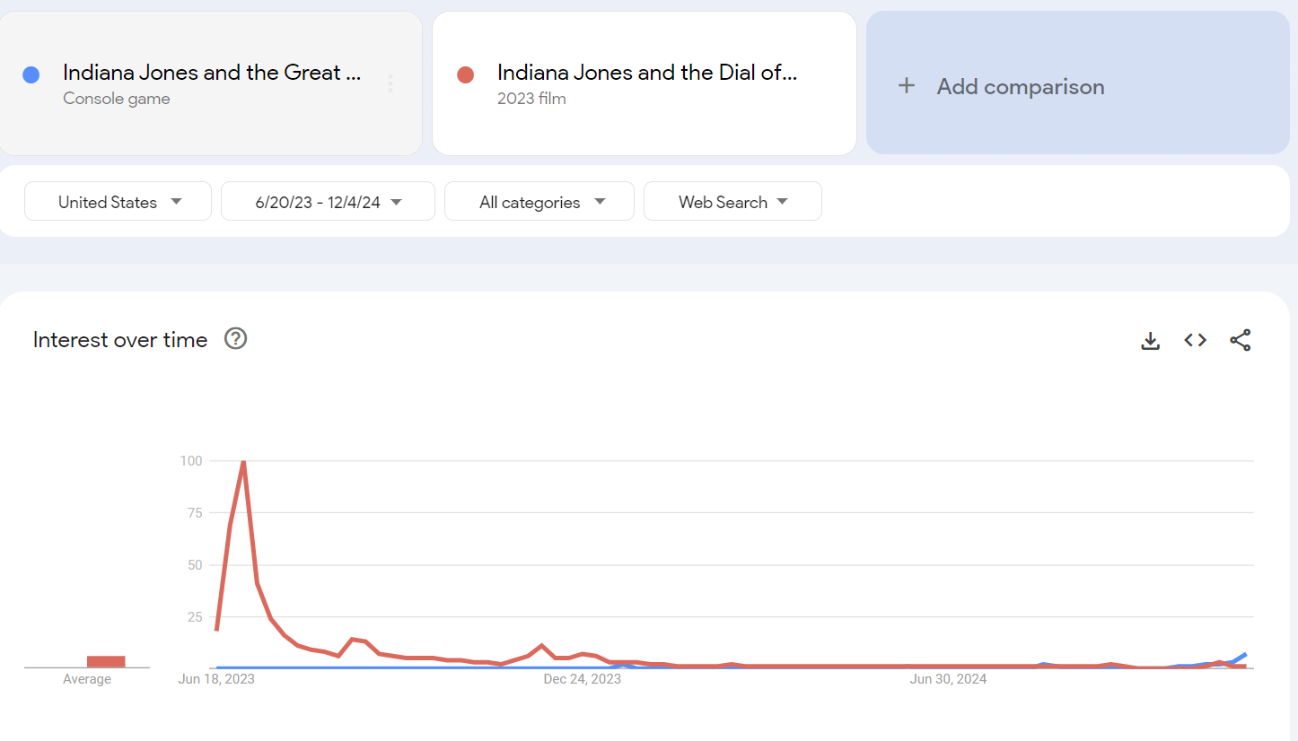 An even more grim omen for the game is that the 2023 film Indiana Jones and the Dial of Destiny had much greater interest in it in the days leading to its release.