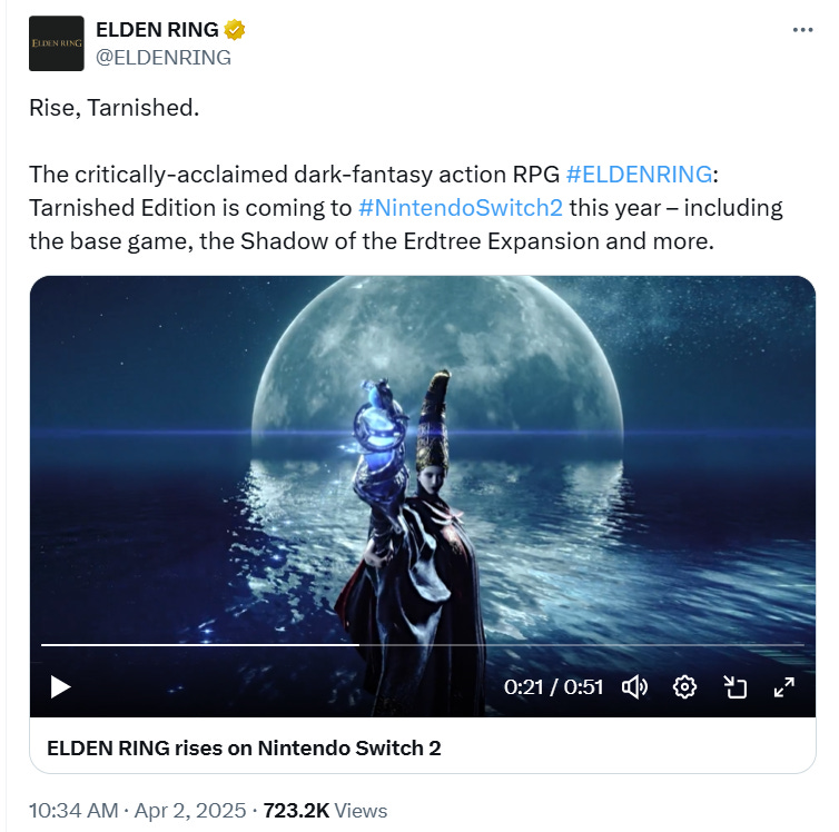 He shared, “Elden Ring: Tarnished Edition on Switch 2 handheld struggles to hit 30fps at all, and it is noticeably running slow whether you’re in an indoor or outdoor environment.”