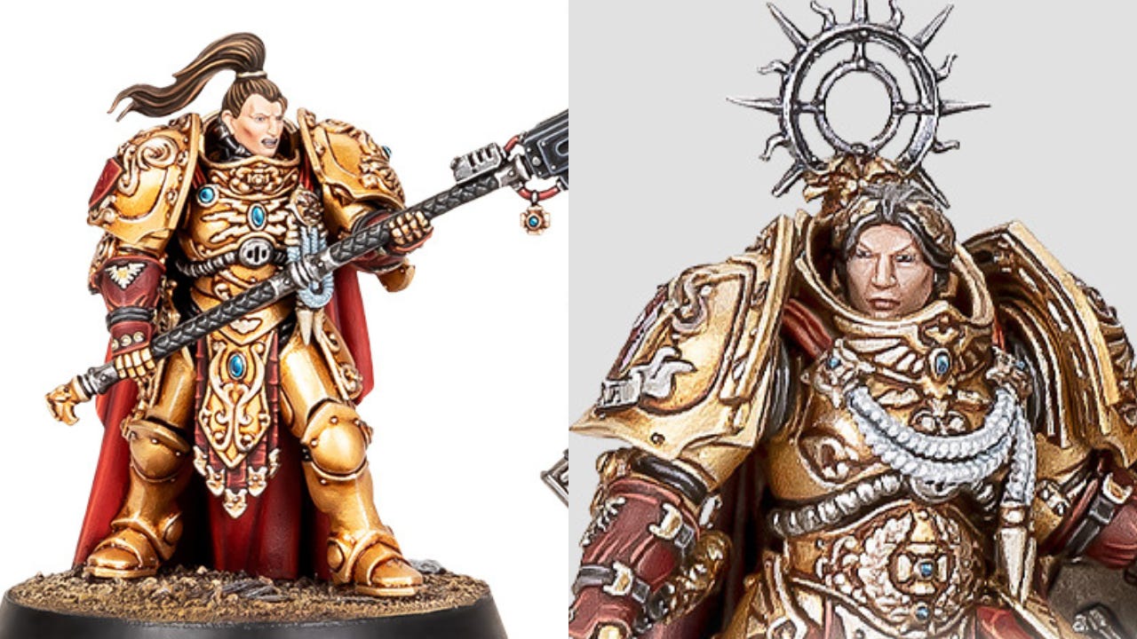 Specifically, the company revealed a female Shield Captain miniature noting she’s the bestest evar, “All Custodians are incredible warriors, but the greatest among them are raised to the rank of the Shield Captain. These warriors stand shoulder-to-shoulder with the greatest fighters in the Imperium, and the new Shield Captain miniature is worthy of such an accolade – just check out the level of detail!”