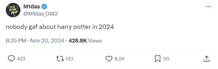 m1das_OW2 posted, “nobody gaf about harry potter in 2024.”