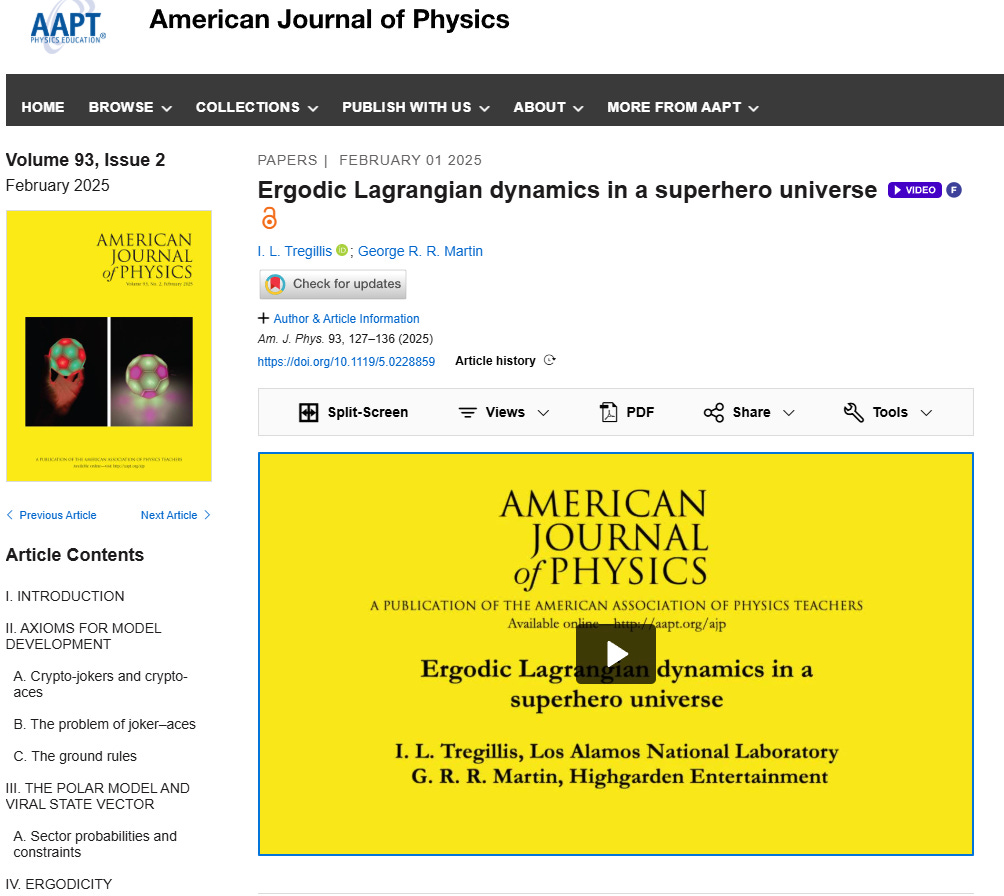 In fact, earlier this month, it was uncovered that Martin had published a new paper in the American Journal of Physics titled Ergodic Lagrangian dynamics in a superhero universe. The paper is described as a “fictional scenario … [that] provides the foundation for a unique exercise in extended problem solving, physics analysis, and quantitative model development.”
