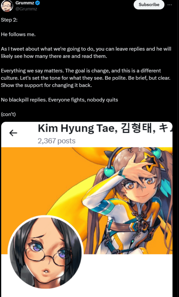 The next few steps go directly at Sony and the PlayStation. Kern recommends that when you go after Sony, you go after them via social media, their most prominent soap box. Starting the #FreeStellarBlade and targeting Sony directly with other mature games which have released uncensored; such as Balders Gate 3 (infamous for literally letting you have sex with a bear) and Cyberpunk, 2077 (which allowed body modification to an extreme).