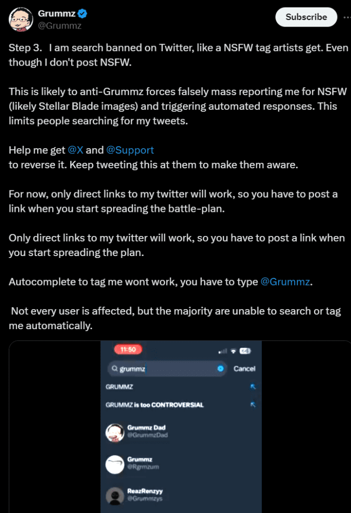 Kern emphasizes the importance of being well-mannered and respectful, even when addressing the issue of his apparent shadow banning on X and other social media platforms. The staff Steller Blade don't need angry babies shouting at social media types; a cool head and disappointment in the actions of X/Twitter is all that's needed.